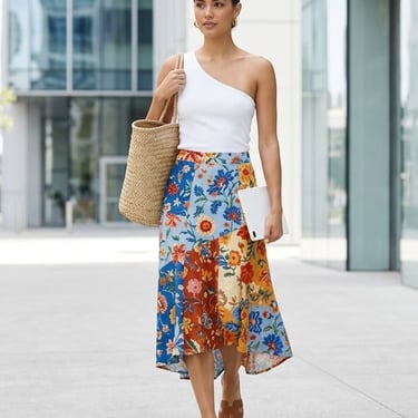 Absolutely. While it's a staple for "Urban Boho" casual looks, you can elevate the Patchwork Midi Skirt by pairing it with the Cloud Dancer Silk Slip Dress (worn as a top tucked in) and adding minimalist gold jewelry. The key is to keep the rest of the outfit simple to let the artisanal print shine.