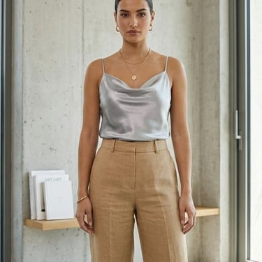 06 | High-Low Glamour: Silver Camisole + Linen Trousers